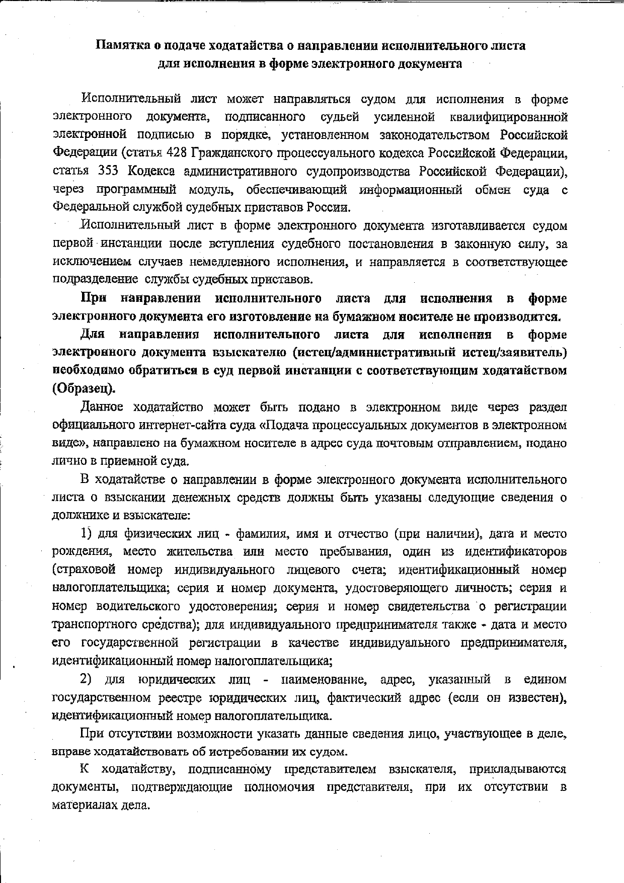 для исполнения в форме электронного документа